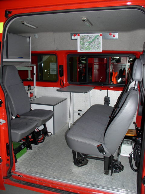 Das Mehrzweckfahrzeug dient zum Transport von Einsatzkräften, Materialtransport und als Einsatzleitung. Zu diesem Zweck sind jeweils ein Arbeitsplatz mit zwei Digitalfunkgeräte, Einsatzplänen und Gefahrgutunterlagen eingerichtet.