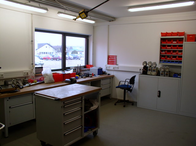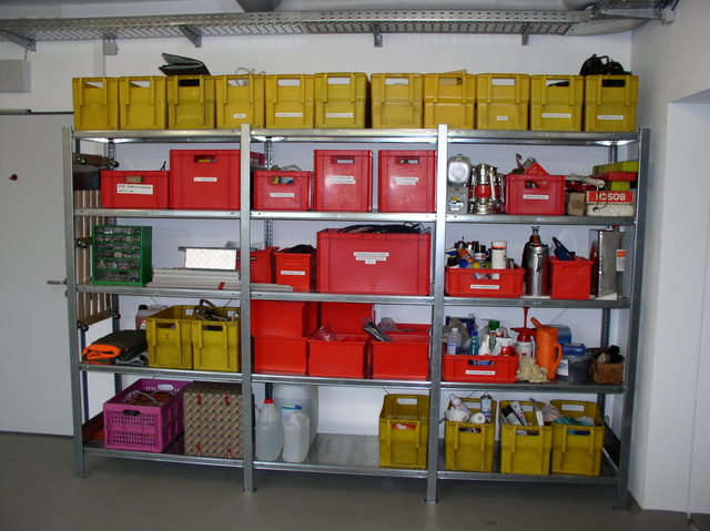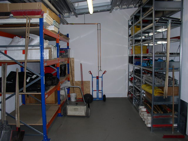 Um anfallende Reparaturen und Wartungsarbeiten erledigen zu können, steht dem Gerätewart eine Werkstatt zur Verfügung. Auch wurde darauf geachtet, das ausreichende Lagerflächen vorhanden sind um notwendiges Werkzeug schnell zur Hand zu haben.